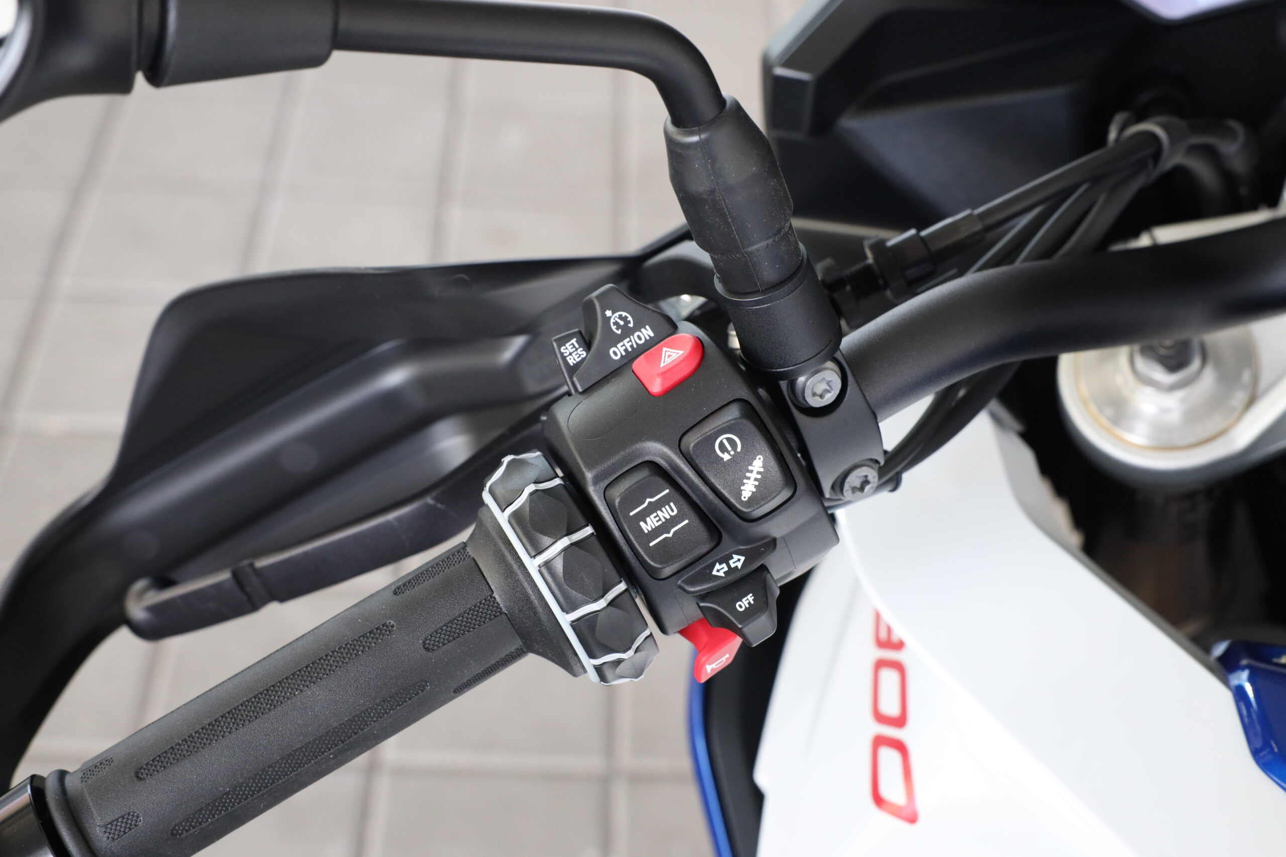 TEMPOMAT na motocyklu, co na to říct. Používám ho ale celkem hojně, hlavně když si chci rozepnout větrání na levé ruce pravou rukou ;)
