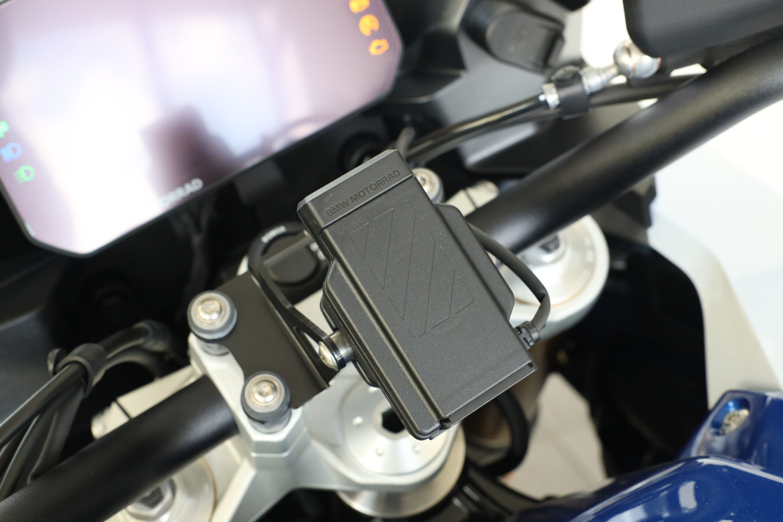 S touto výbavou motocykl přijde již s připravenou plotnou na navigaci BMW, takže si ji jen cvaknete do držáku a frčíte kam jen libo. Navigace BMW se ovládá kolečkem na levé ruce.